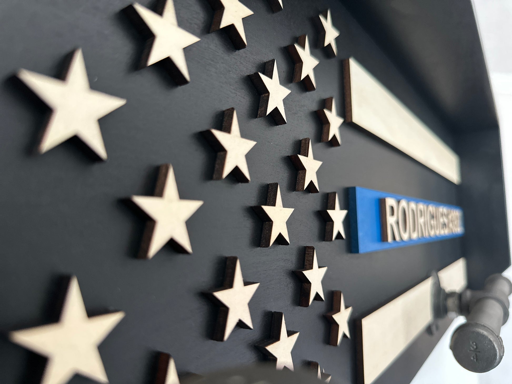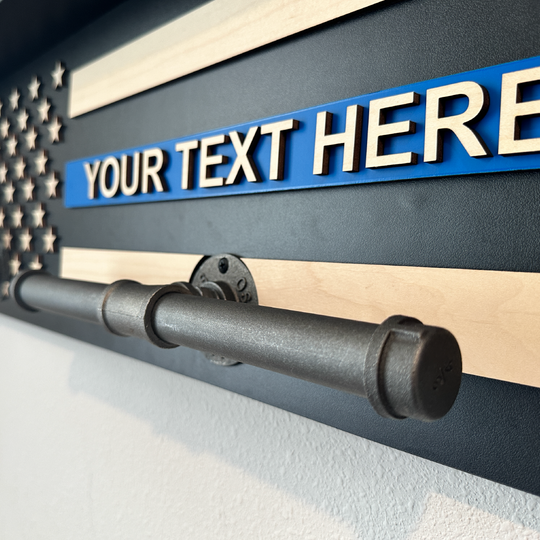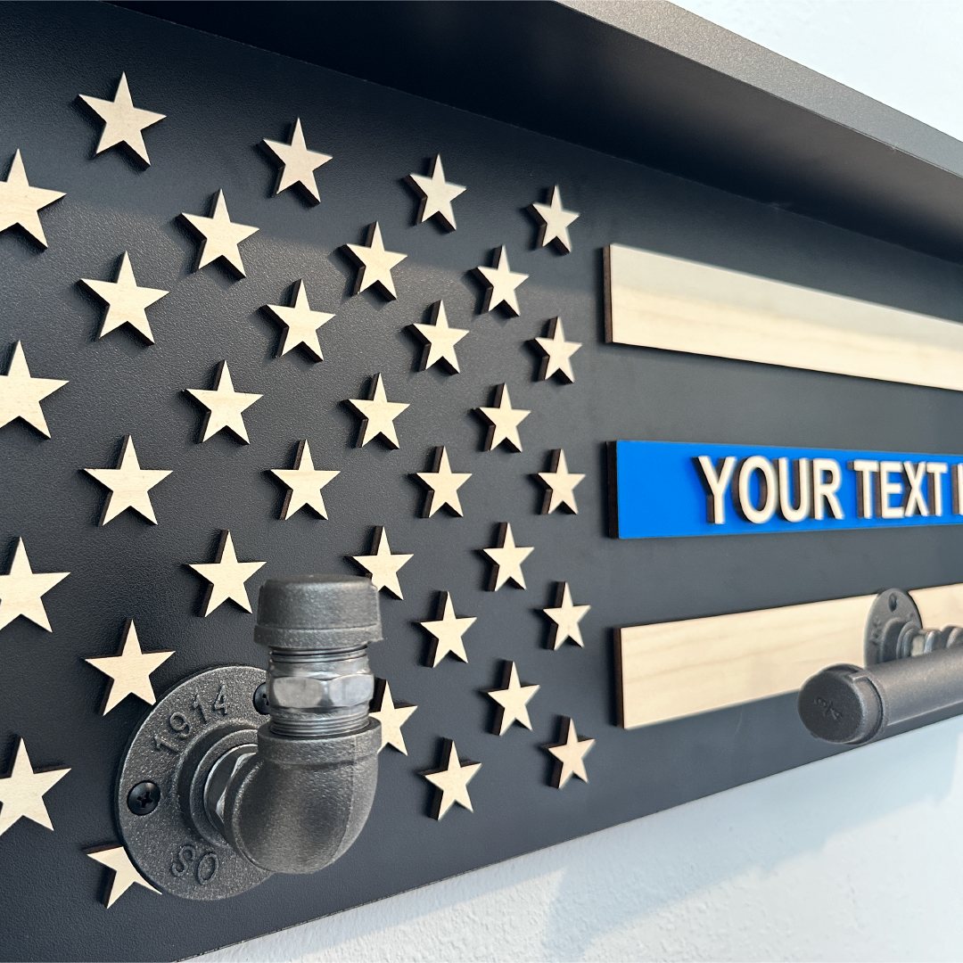 Law enforcement officers have a lot of gear to carry with them on a daily basis. This Police Gear Rack is the perfect way to organize and store all of that gear. A lovely Law Enforcement Gear Rack to keep your belongings organized and safe, this beautiful American Flag Gear Rack is the perfect addition to your home. A great gift for police officers, this Police Gear Rack is sure to please.