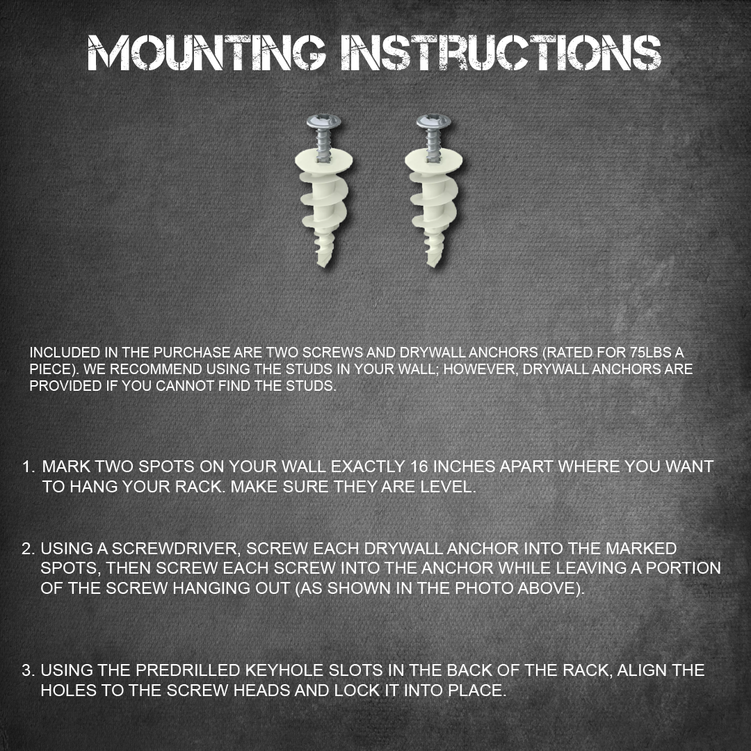This rack is easy to set up. Simply hang it on your wall, and you're good to go! For the side hooks, holes will be pre-drilled. We remove the hooks before shipping to avoid breaking.